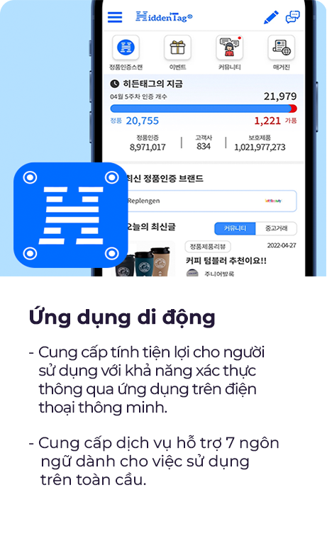 Quét tem HiddenTag được dán trên sản phẩm sau khi tải và mở ứng dụng HiddenTag